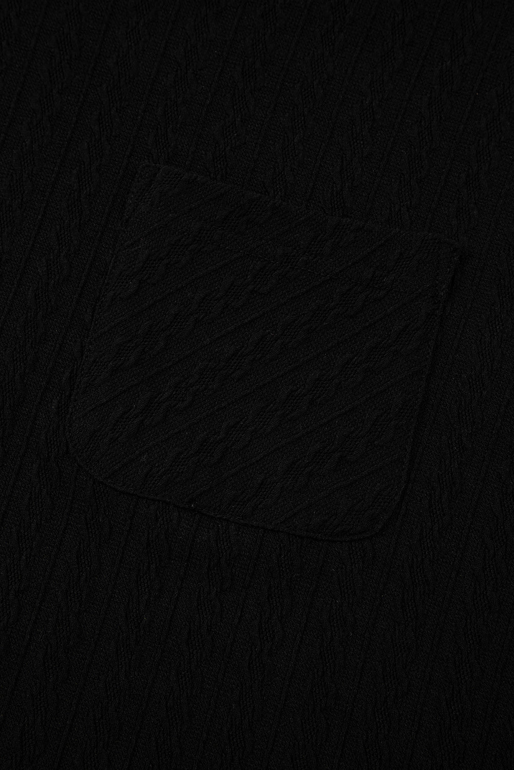Black Textured Chest Pocket Drop Sleeve Top and Pants Set