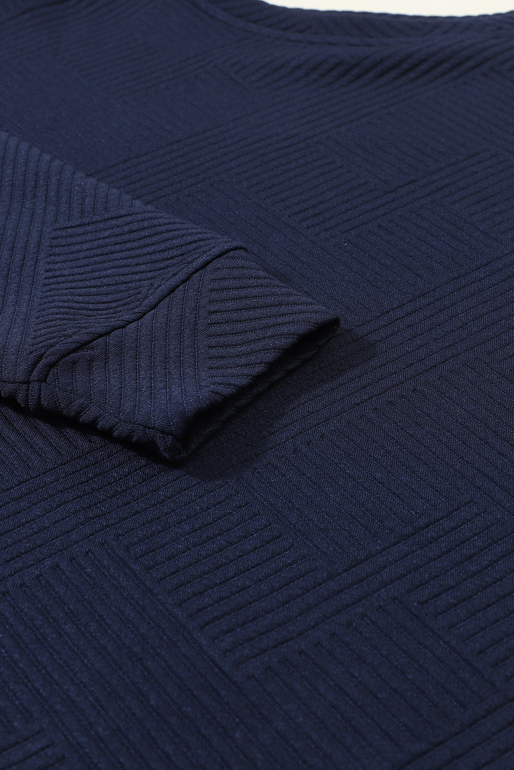 Navy Blue Textured Loose Slouchy Long Sleeve Top and Pants Set