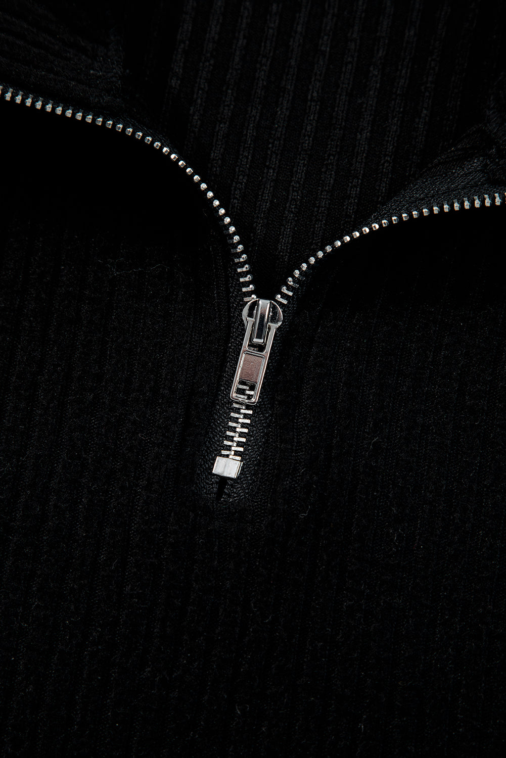 Black Ribbed Zip Neck Drop Shoulder Pullover Bodycon Skirt Set