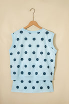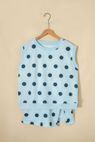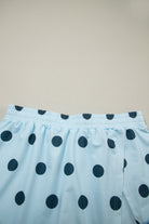 Sky Blue Ribbed Trim Polka Dot Print Tank Split Mini Skort 2pcs Set